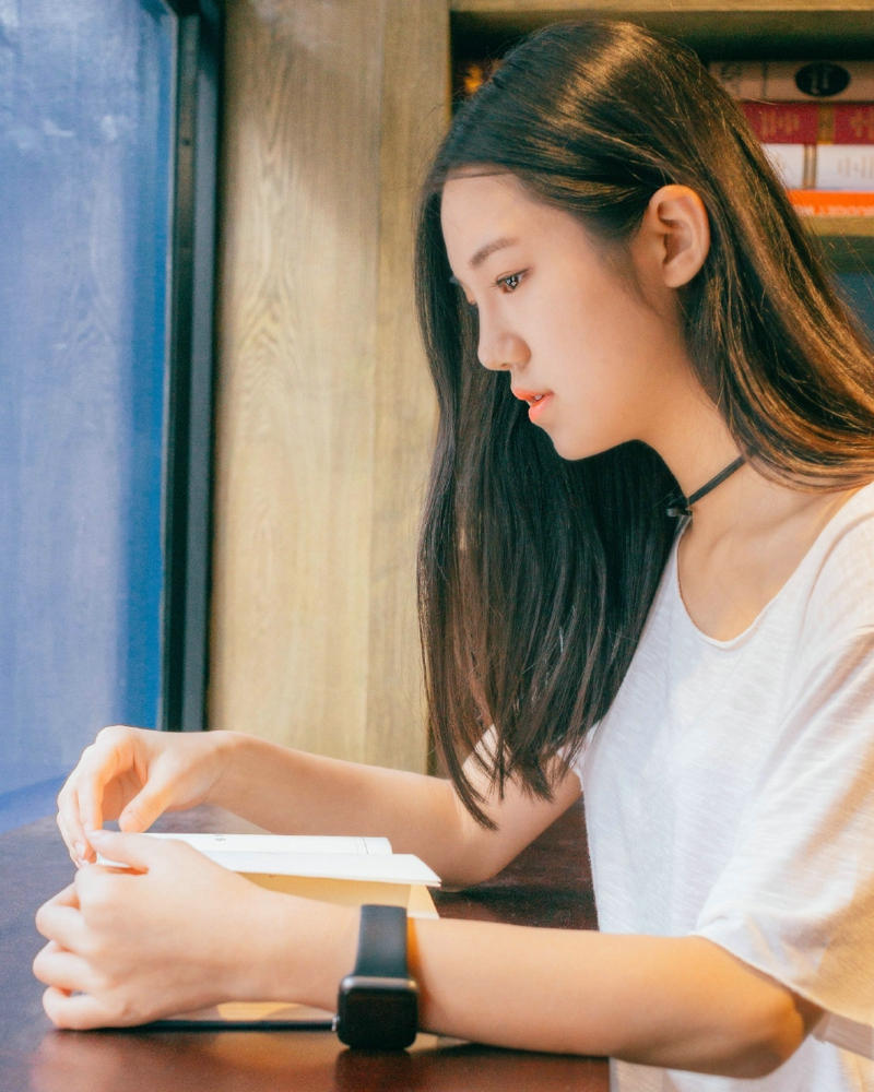 图书馆内的呆萌少女安静沉浸书海-套图吧