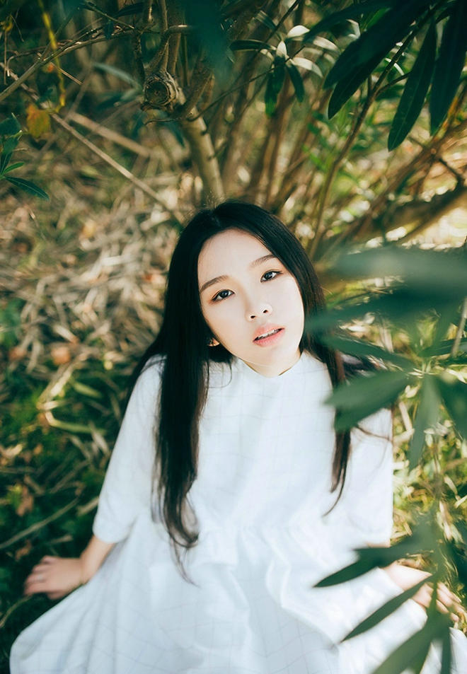 树荫下的中分黑长直美艳美女幽静写真-套图吧