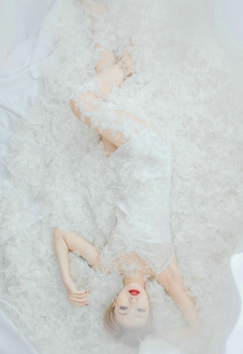 纯白蕾丝睡衣红唇短发美女娇艳写真-套图吧
