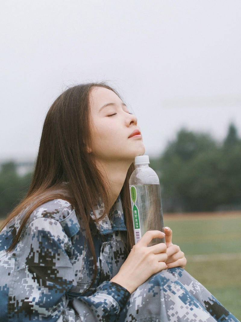 军训长发娃娃脸妹子侧颜美丽动人-套图吧