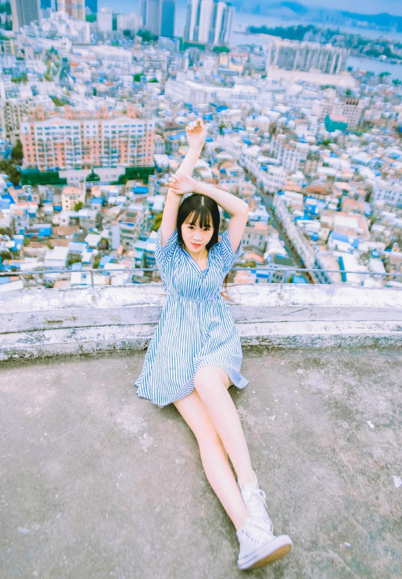 天台上的可爱元气少女连衣裙清新怡人-套图吧