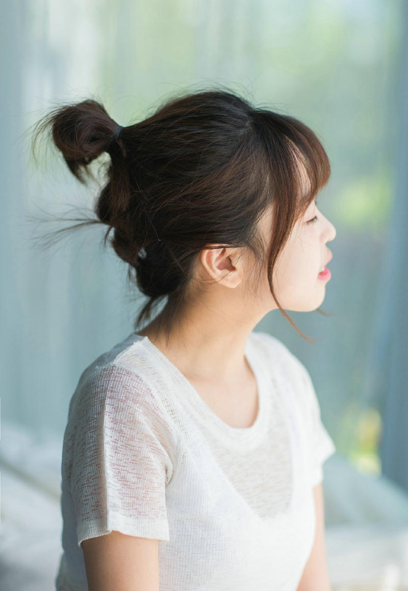 被窝里的可爱丸子头少女爱笑的眼镜-套图吧