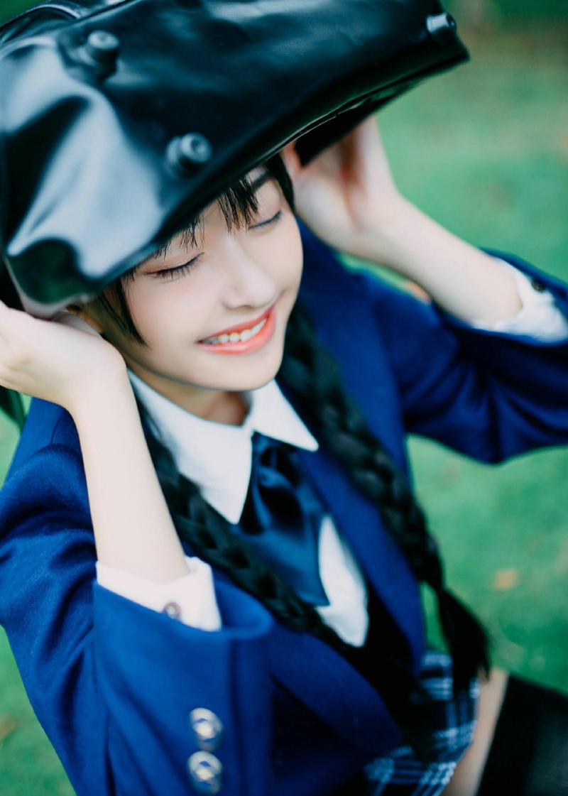 草坪上的日系学院风麻花辫妹子纯真可爱-套图吧