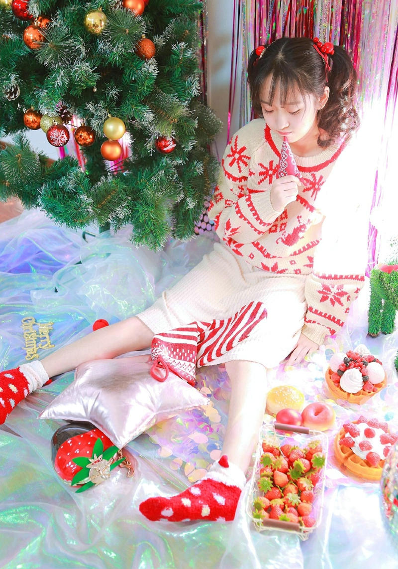 圣诞双马尾靓丽妹子可爱清新俏皮-套图吧