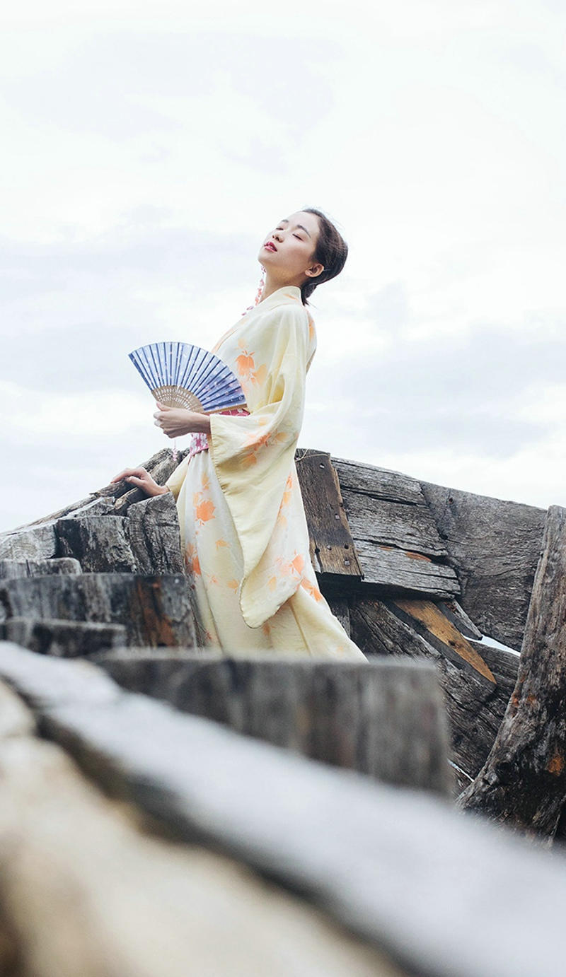 船头上的和服艳丽美女气质张扬写真