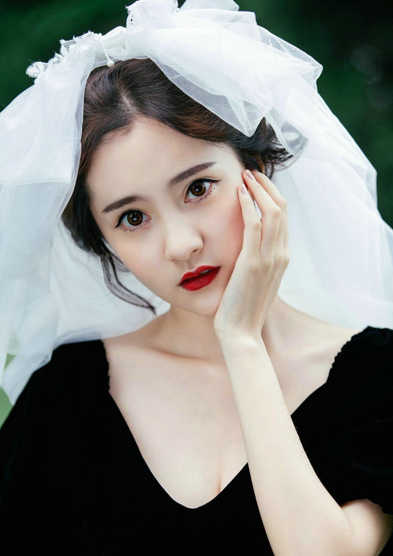 气质盘发黑裙美女红唇娇艳欲滴-套图吧