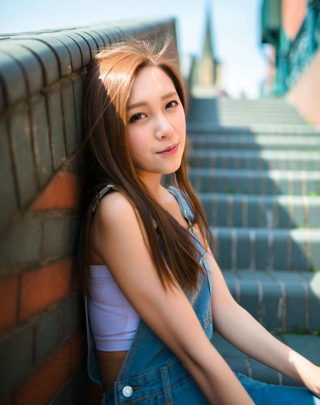 背带牛仔裤的清新少女阳光俏皮自信十足