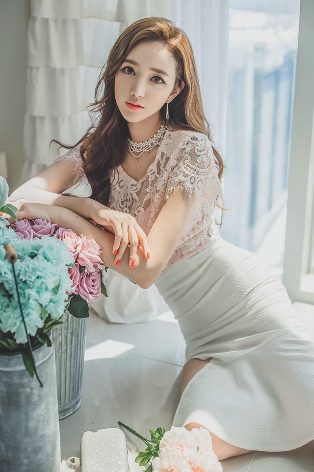 花丛中的气质美模蕾丝包臀裙柔美清新-套图吧