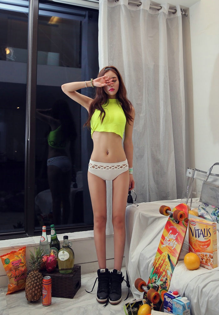 滑板美女室内品尝美食健康肤色惹人羡慕-套图吧