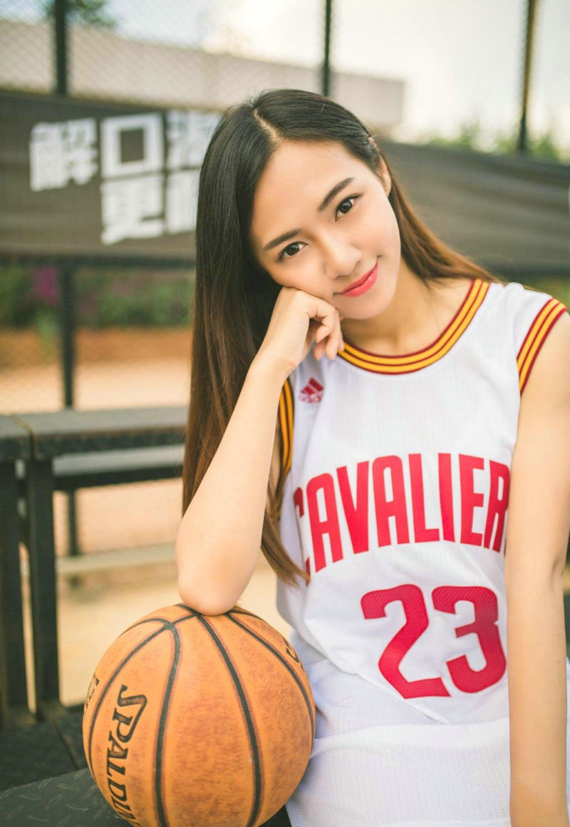 篮球场内的运动活力漂亮俏皮美女-套图吧