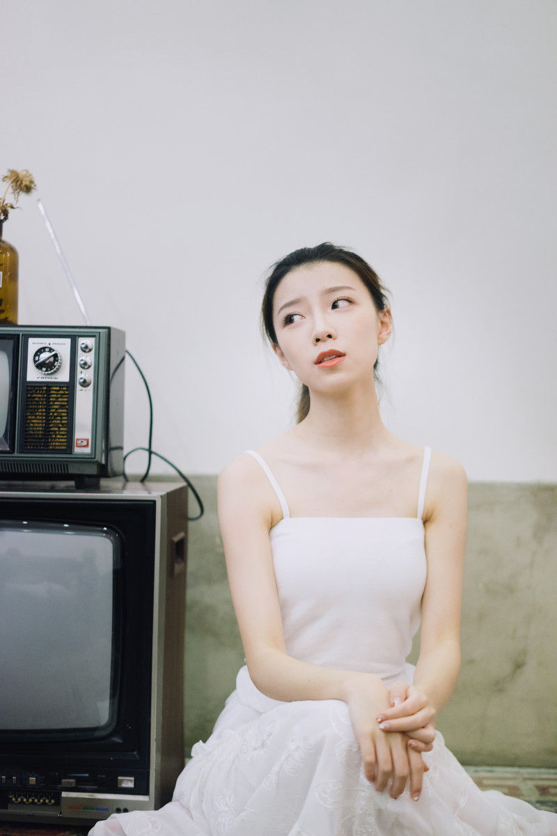 兔牙女孩白色吊带裙私房温馨写真