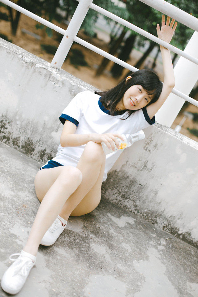 体育场上的运动服女孩靠在栏杆上歇息-套图吧