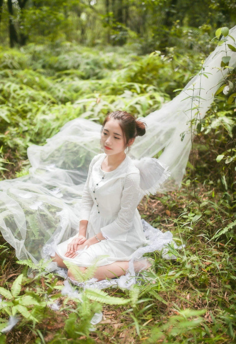 森林内的天使少女白皙肌肤美艳动人-套图吧