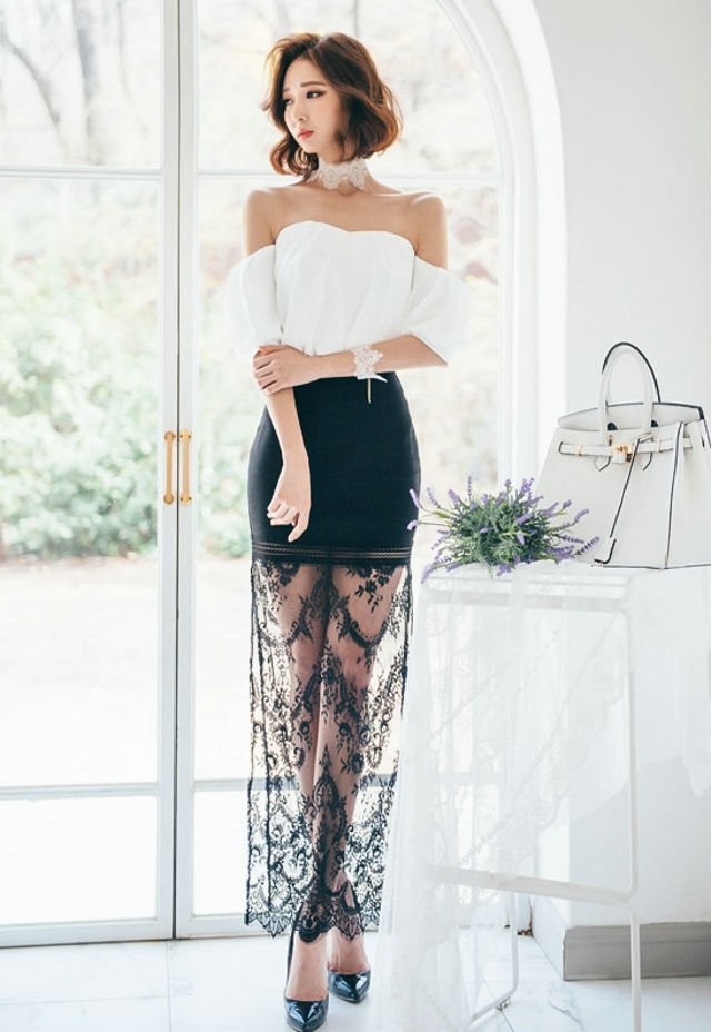 梦幻头纱裸肩蕾丝裙美模倚靠窗台看远方-套图吧