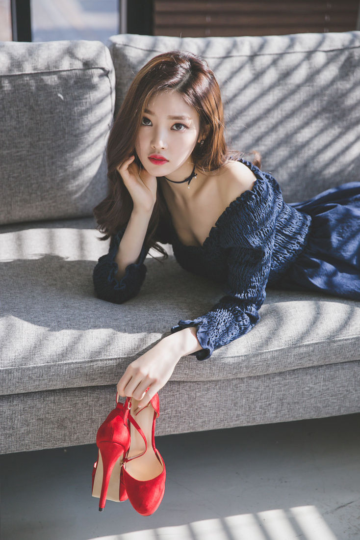 高挑气质高跟超短裙美女居家红唇写真