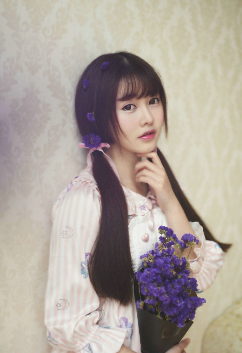 大眼萌妹子私房双马尾花束甜美娇小可人