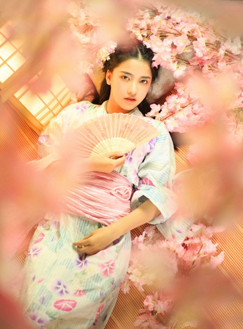 樱花丛中的和服姑娘清丽香甜写真-套图吧