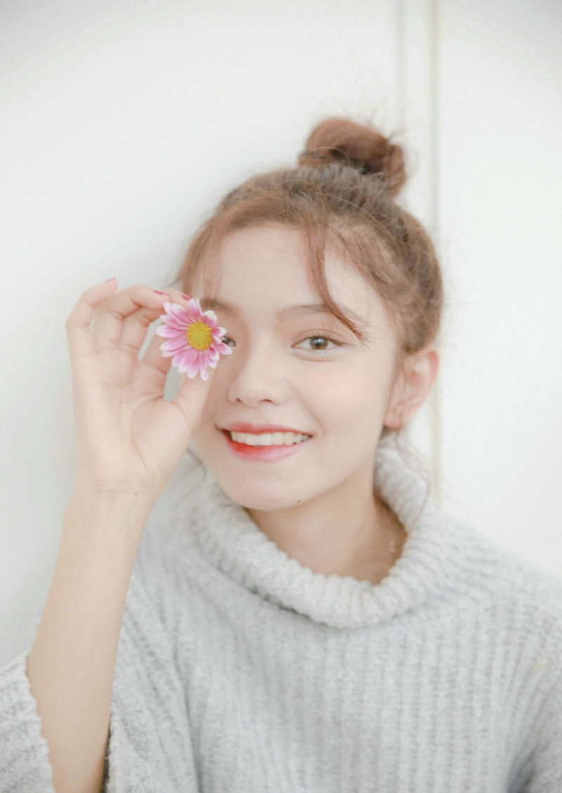 清新丸子头毛衣少女灵动美眸养眼写真-套图吧