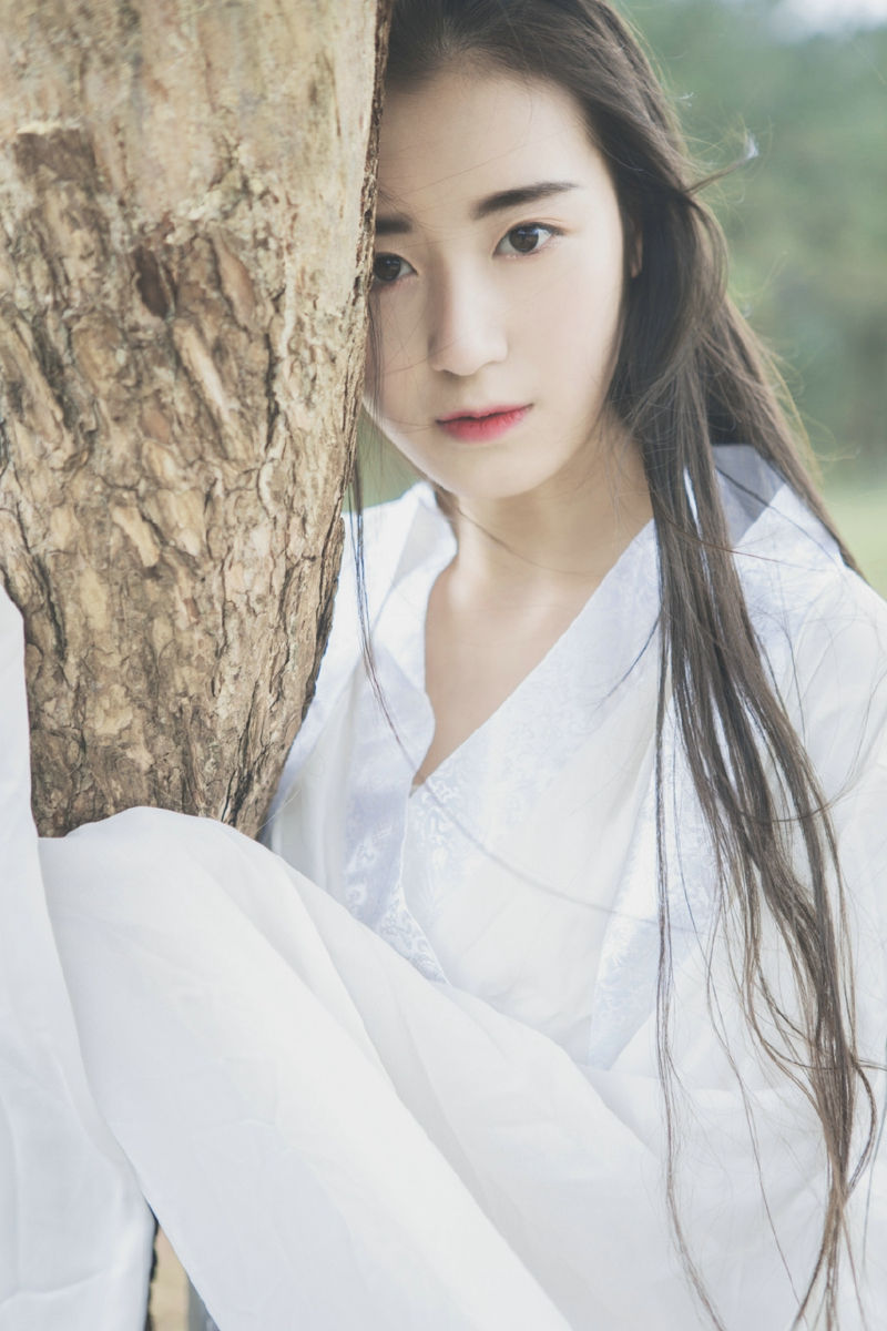 白衣汉服美女长发飘飘文艺气息魅人-套图吧