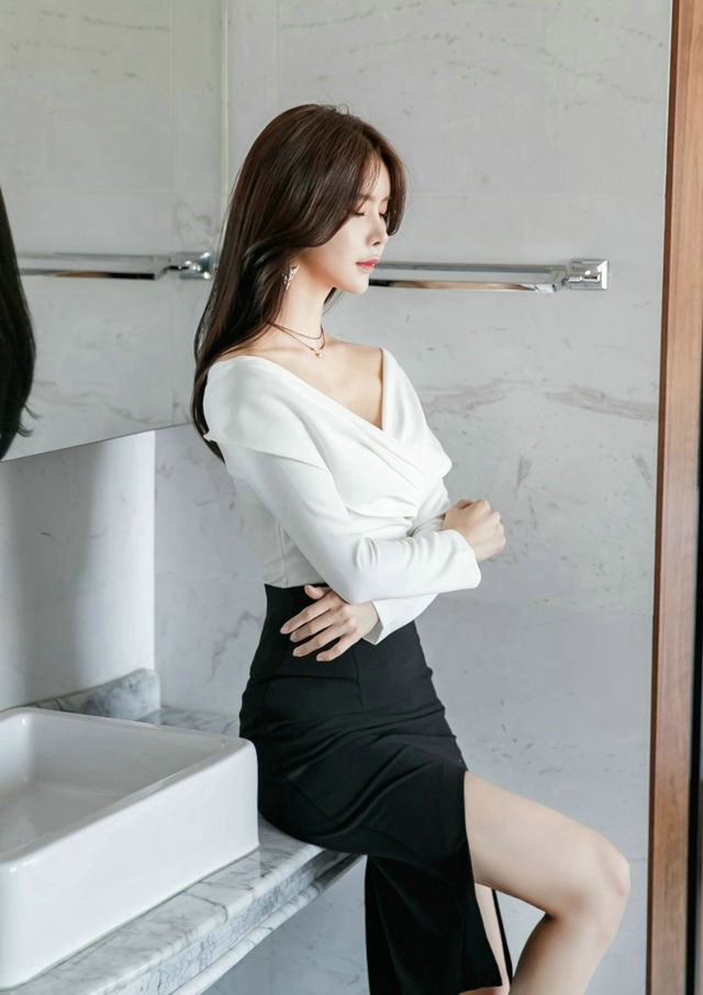 酒店一字肩裙优雅美模端庄秀气侧颜迷人-套图吧