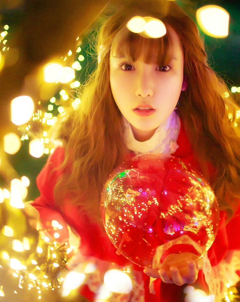 夜晚灯光中的红衣少女靓丽迷人-套图吧