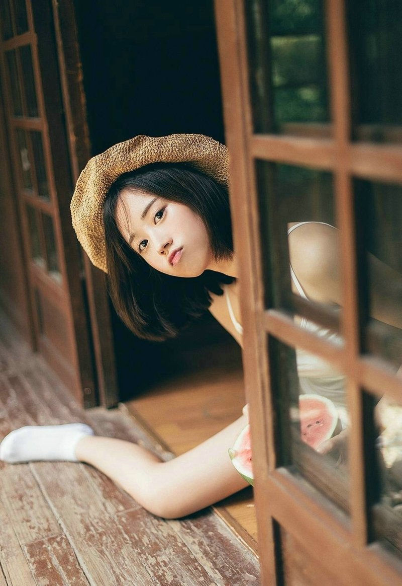 可爱背心女生吃着西瓜卖萌清凉迷人写-套图吧