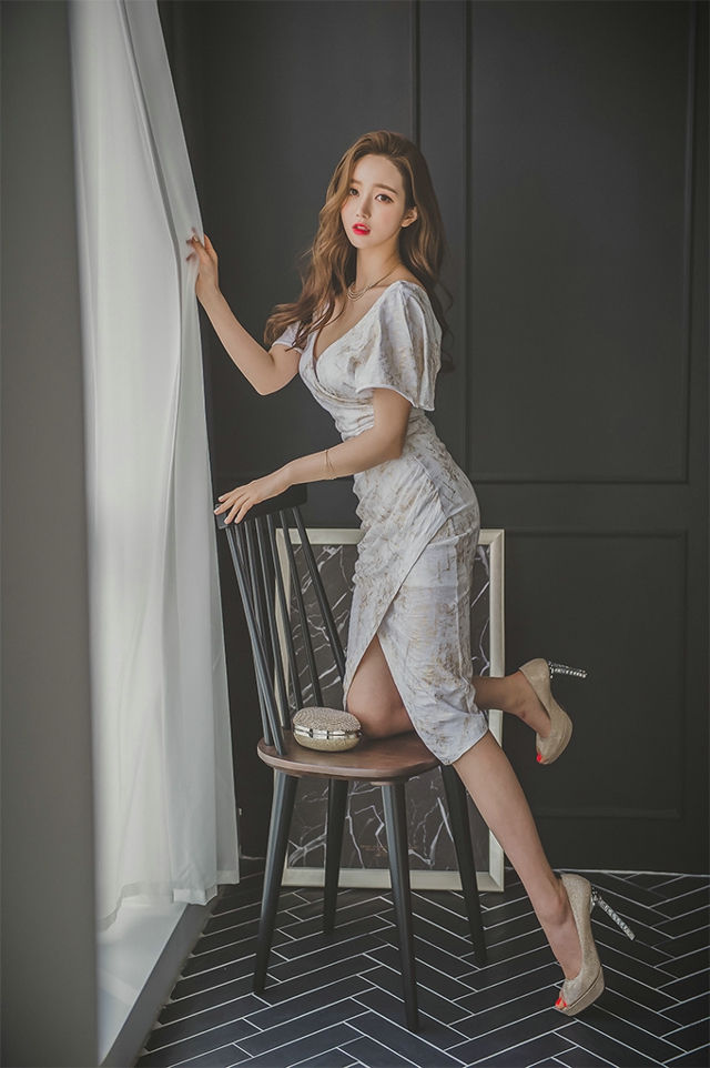 窗帘美模低领裙秀美乳勾魂翘腿诱惑