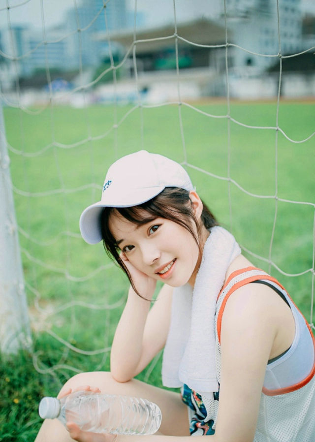 清新美女棒球帽阳光操场上笑容可人-套图吧