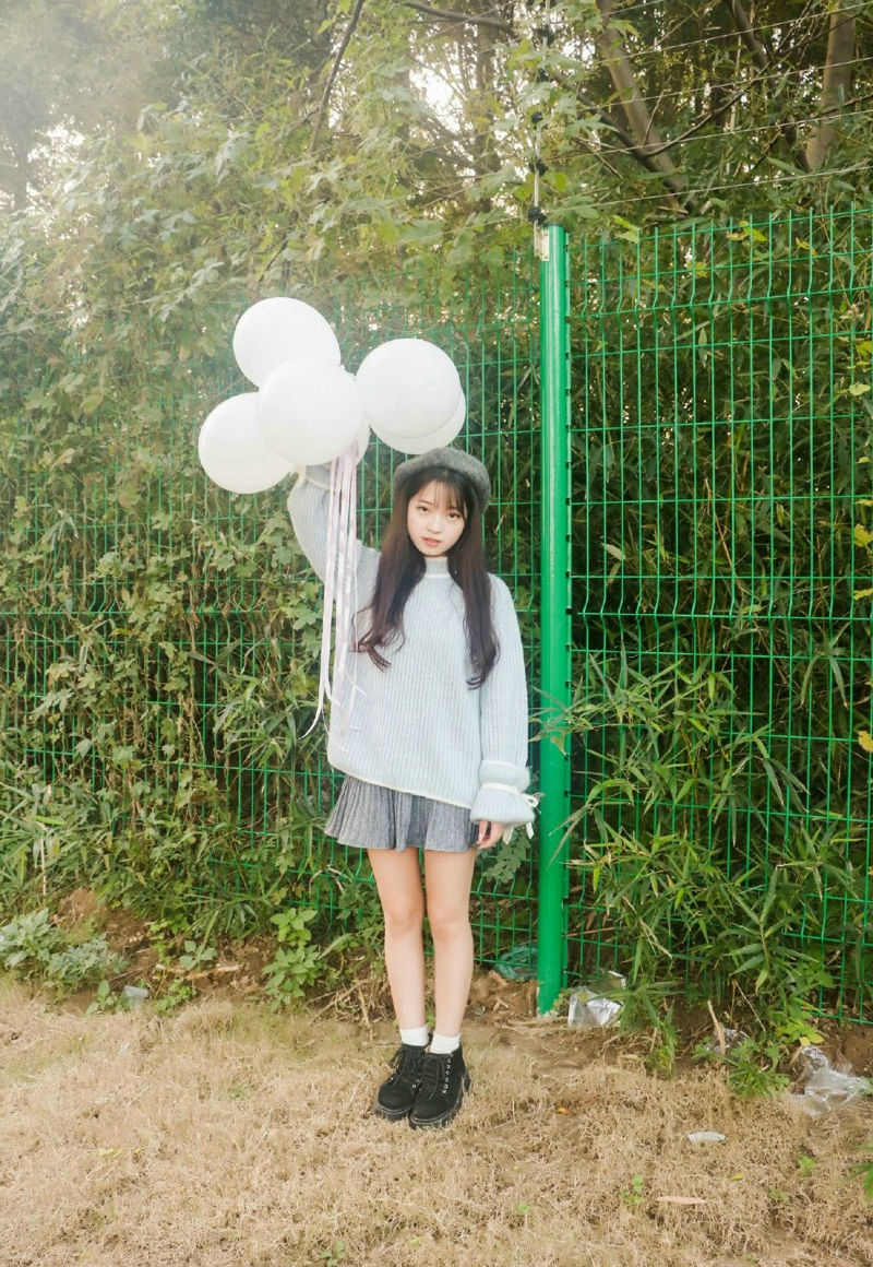 户外气球娇萌贝雷帽毛衣妹子纯真动人-套图吧