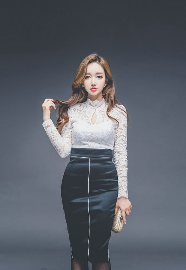 美艳卷发美模蕾丝包臀裙显甜美高雅-套图吧