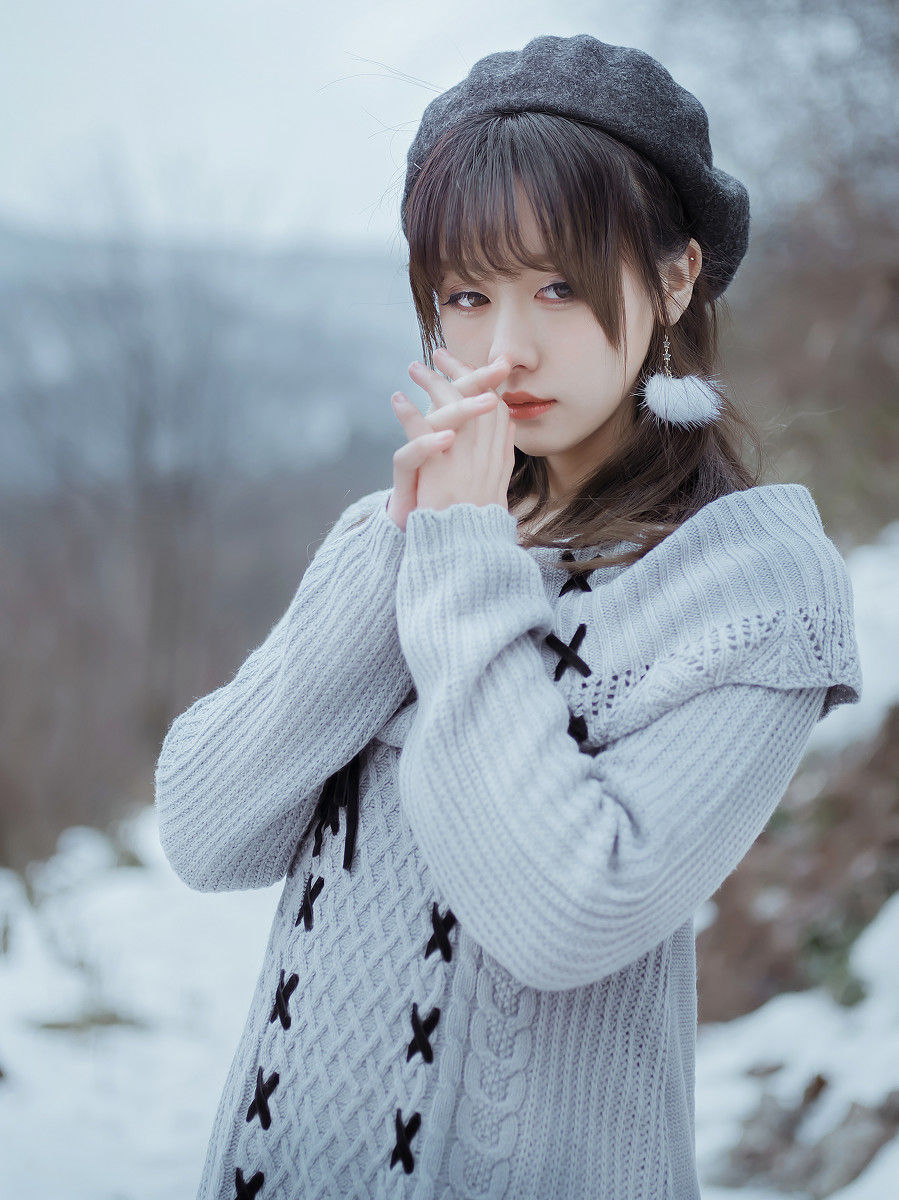 典型的韩国美女雪中漫步清新迷人写真-套图吧