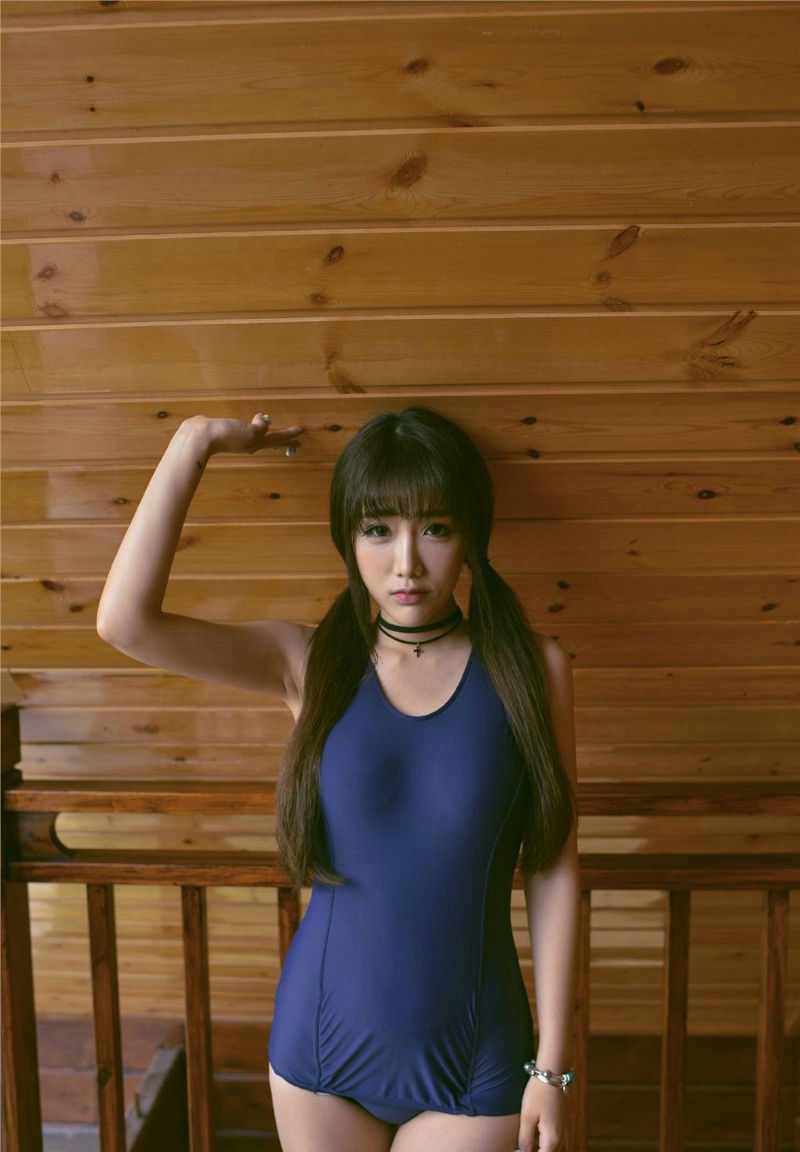 可爱大眼美女连体比基尼写真