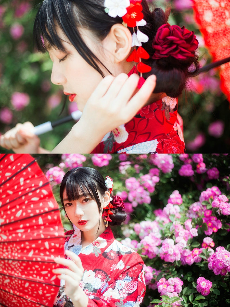 花海中的和服艳丽女神娇美可人