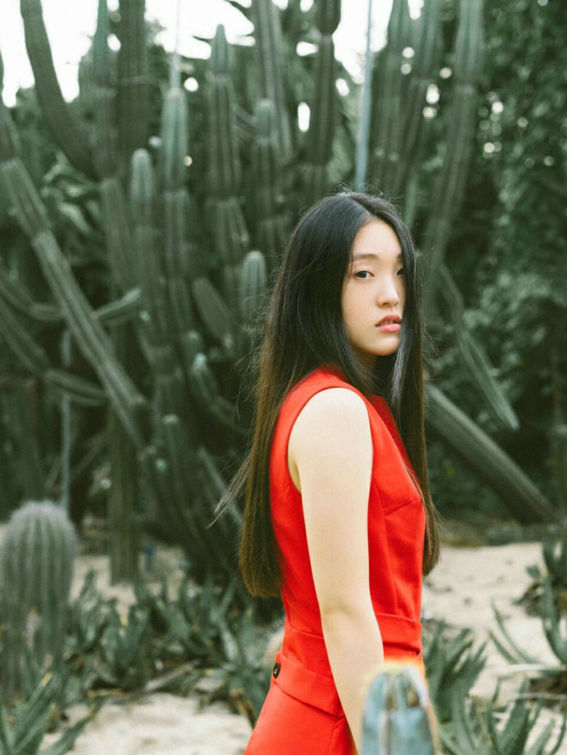 植物园内的红唇直发美女端庄迷人-套图吧