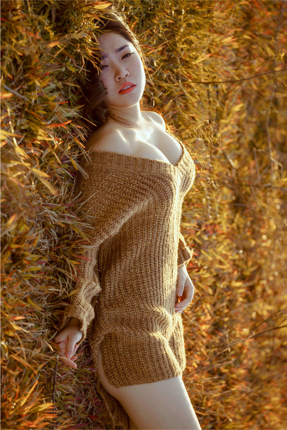 傲人上围白净女孩野外露香肩阳光写真
