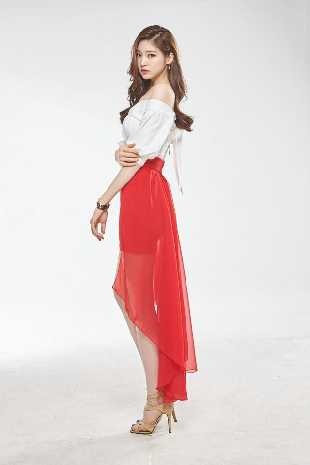 裸肩飘逸纱裙美模隐约秀美腿微笑迷人仙气足