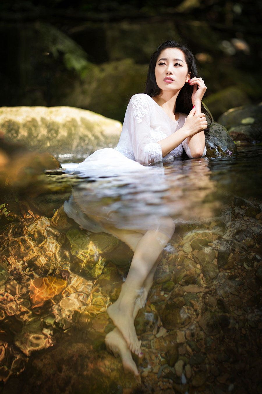 长腿美女溪水边湿身写真妩媚性感写真