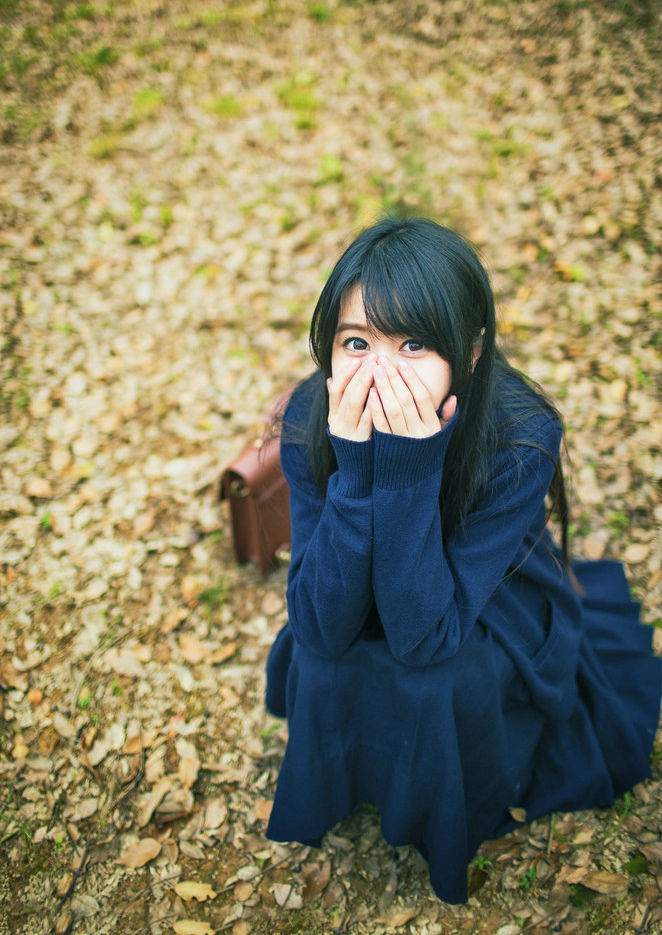 大眼气质美女深蓝色长裙清纯可爱写真-套图吧
