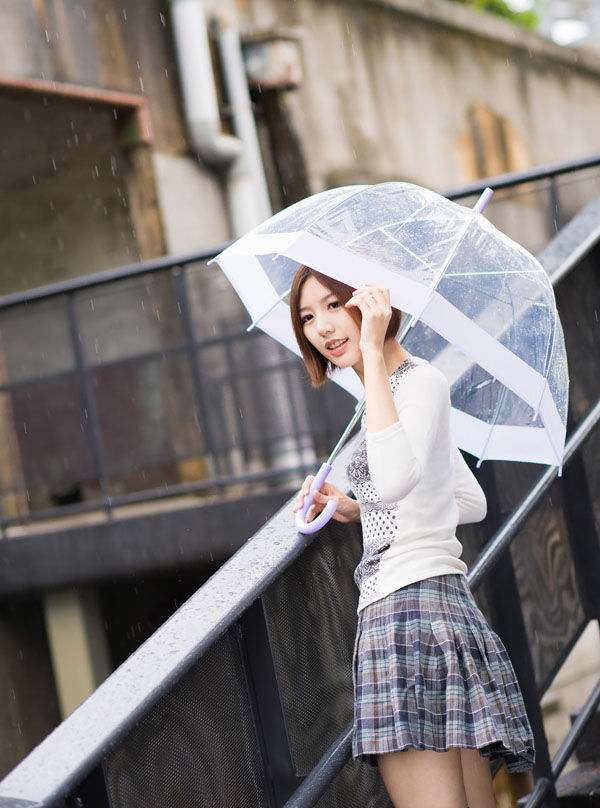 短发美女秋季小露香肩甜美迷人写真