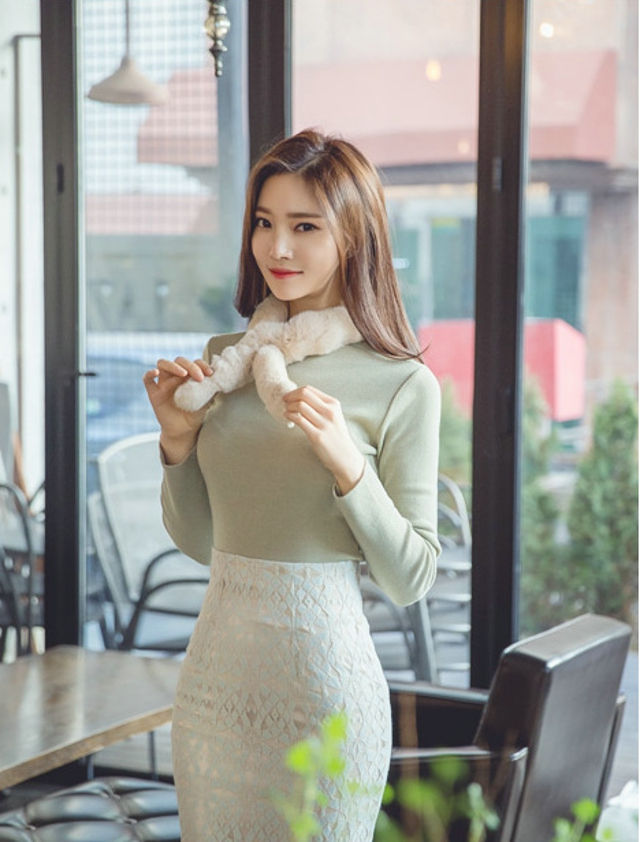 围脖美模蕾丝包臀裙甜美可爱显极品身材-套图吧