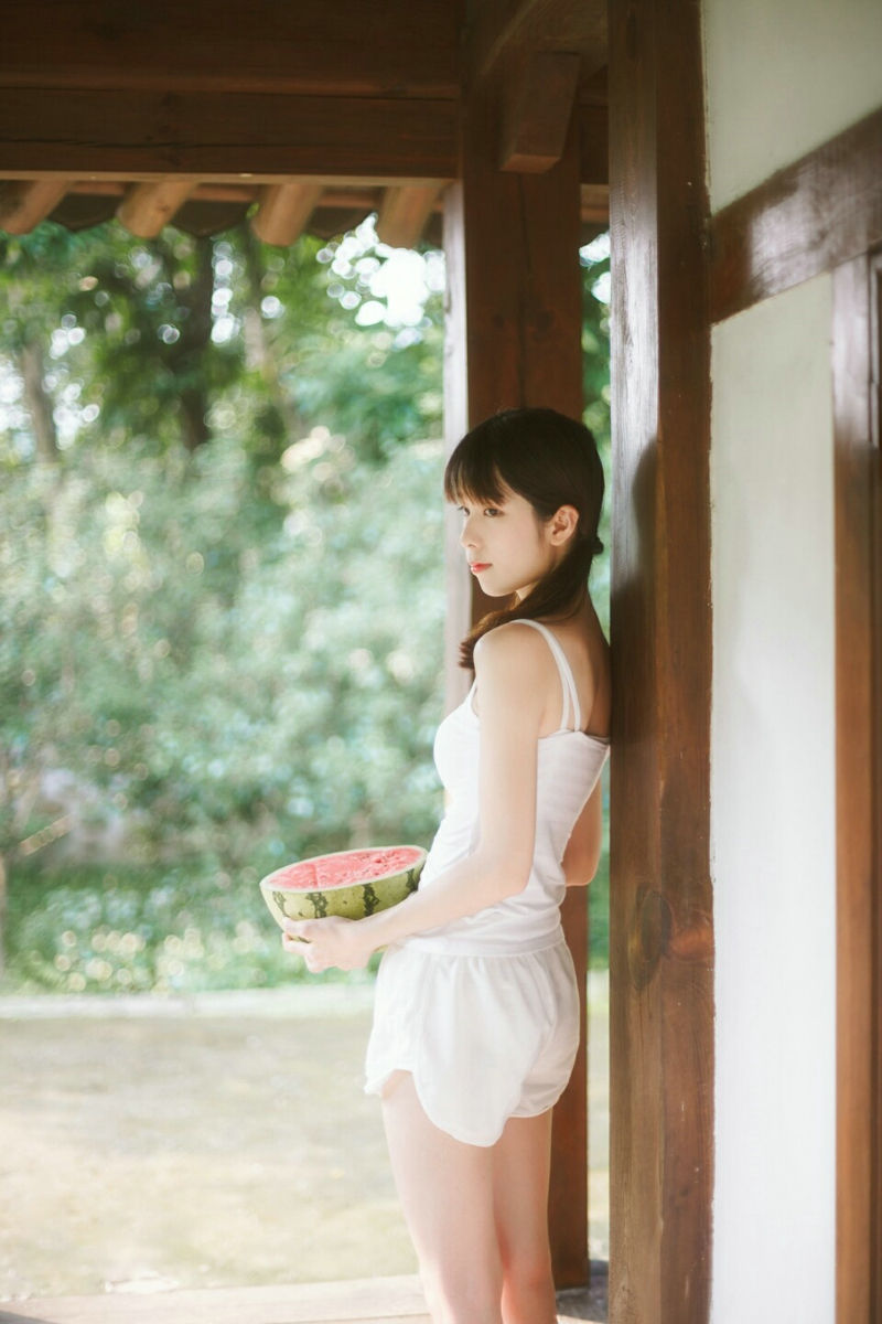 夏日西瓜少女背心白皙娇嫩美肤-套图吧