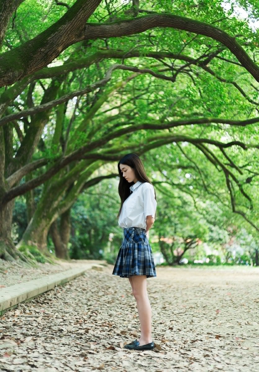 白衬衣短裙文静女孩清新甜美活力十足