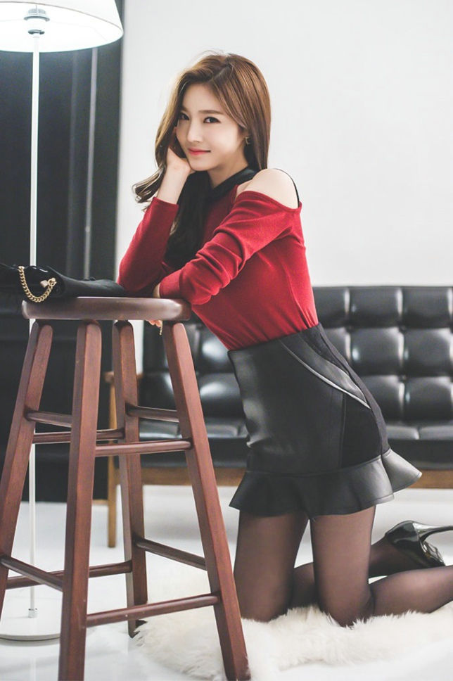 毛毯美模紧身皮裙娇俏性感简约时尚