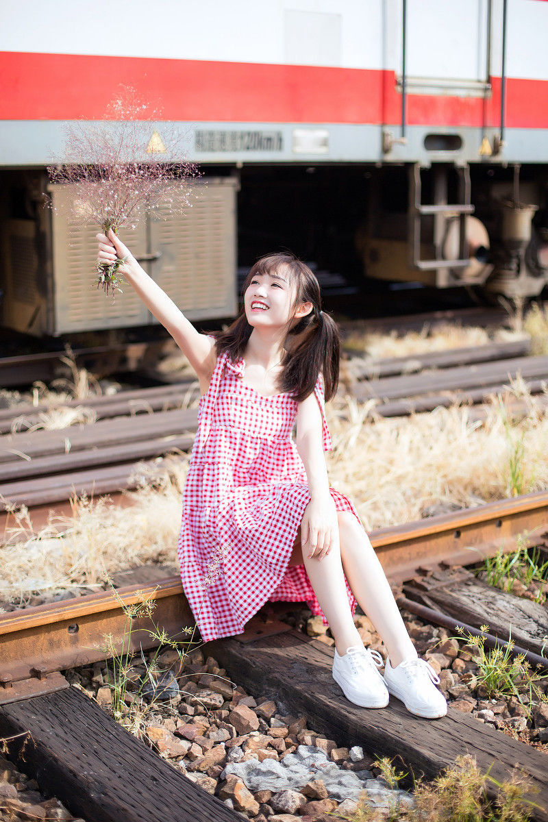 00后刘海美少女废弃铁轨阳光写真