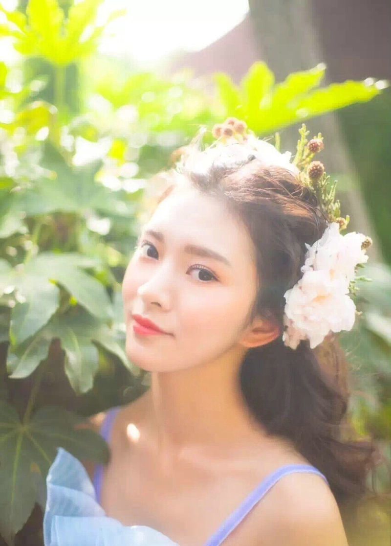 高颜值盘发美女如花般娇嫩美丽