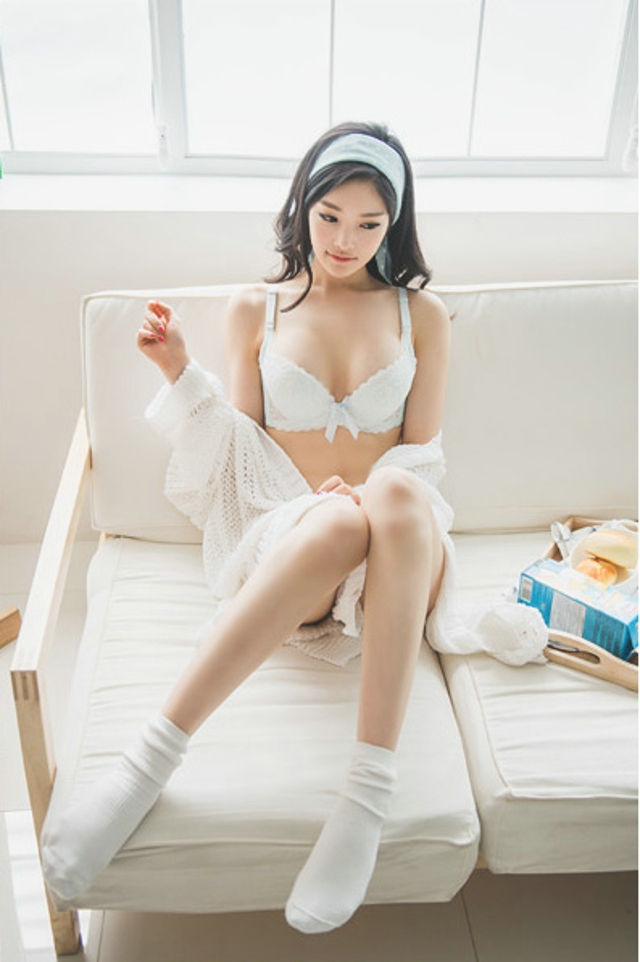 清晨内衣嫩模坐在沙发上喝牛奶诱惑-套图吧