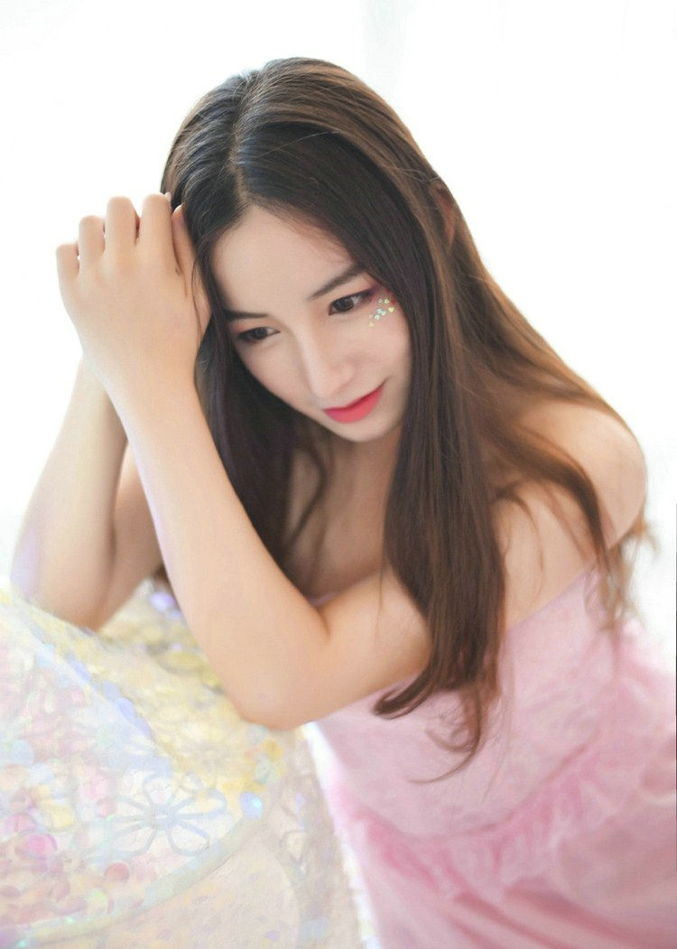粉嫩长裙美女柔顺长发飘逸私房写真