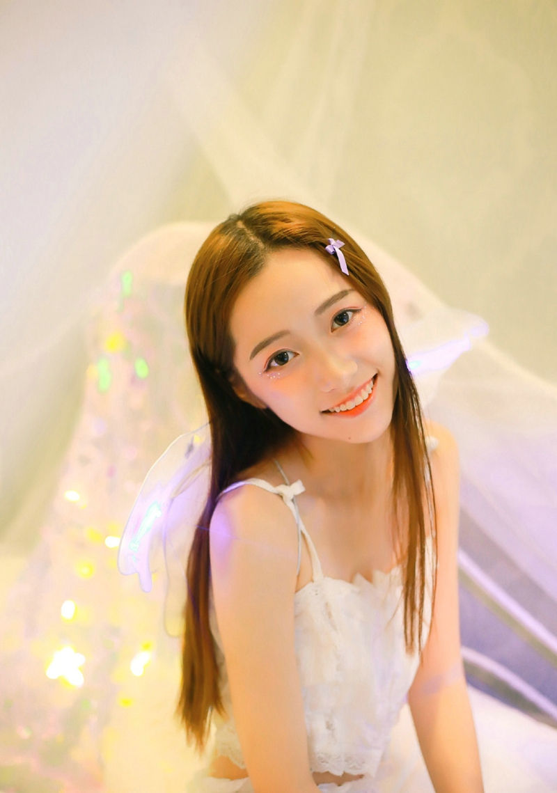 灯光中的长发妹子清纯怜人笑容-套图吧