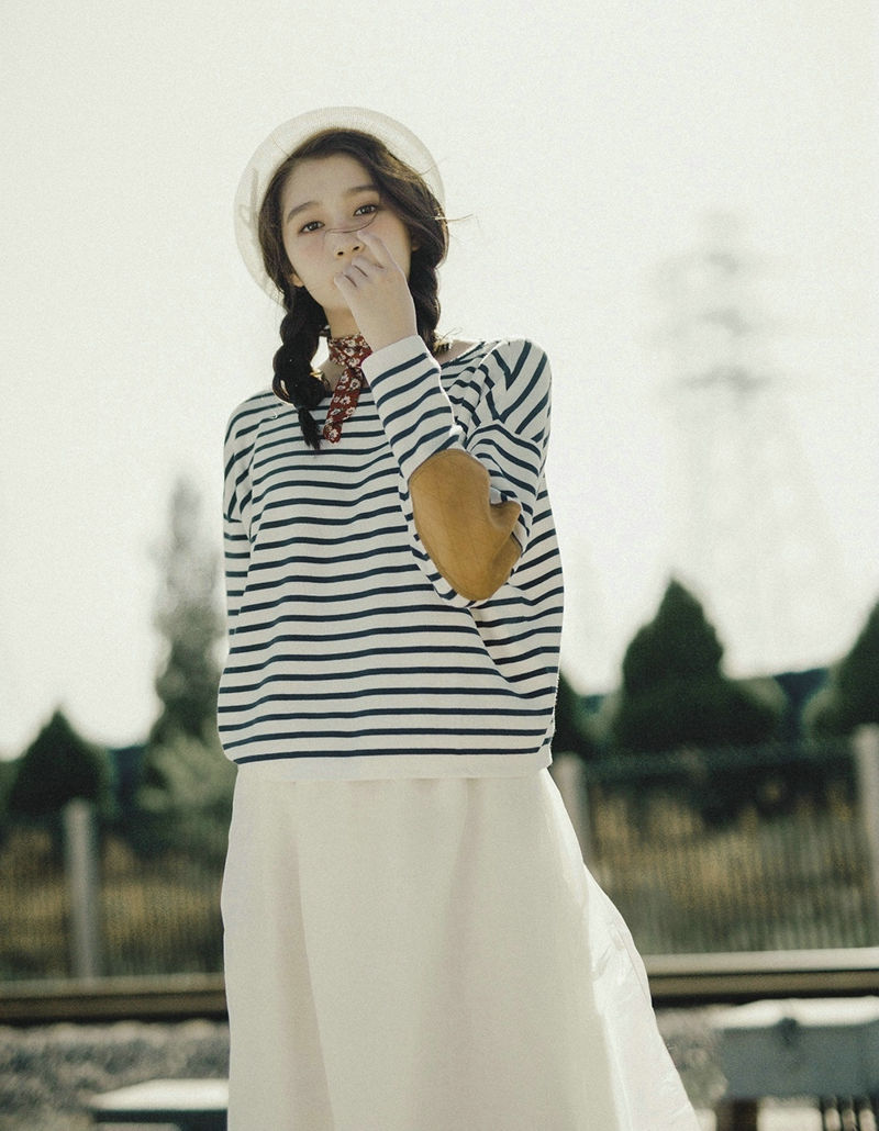 轨道上的条纹英伦风少女侧颜美丽动人-套图吧