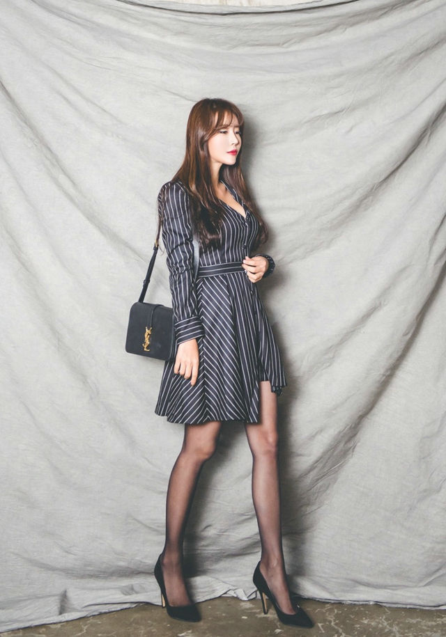 棚内空气刘海美女模特条纹裙简单干练-套图吧